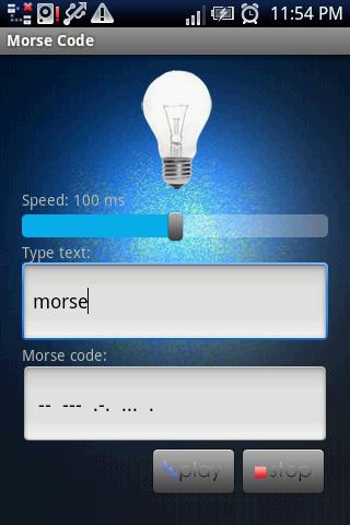 Overview: Codes and decodes texts and SMSs in morse code of sound, light, vibration and symbols. Allows for custom encryption codes shared with your friends for an encrypted SMS communication.