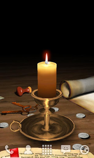 This live wallpaper turns your home screen into antique table lit by flickering candle. Candle melts down as battery of your device drains. View rotates as home screen changes, providing you a 360-degree overview of the scene.