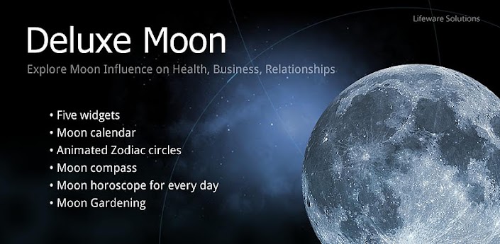 Are there connections between the moon and plants, human emotions, blood pressure, health or finance? Discover new amazing relationships with Deluxe Moon application!
