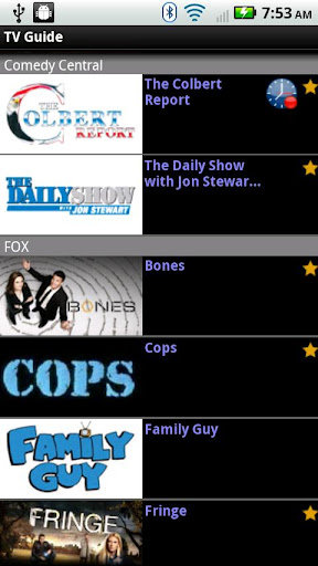 DroidTV Primetime includes the best prime-time, subscription-only shows. These shows are indicated with a gold star in the TV Guide screen.