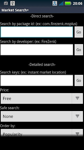 Overview: Search for applications according to a detail in the Android Market.